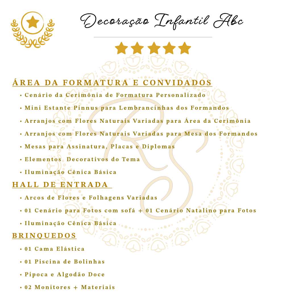 º 04 Horas de Evento + 01 Hora Extra para cerimônia ou homenagem realizada na Recepção Shalom;